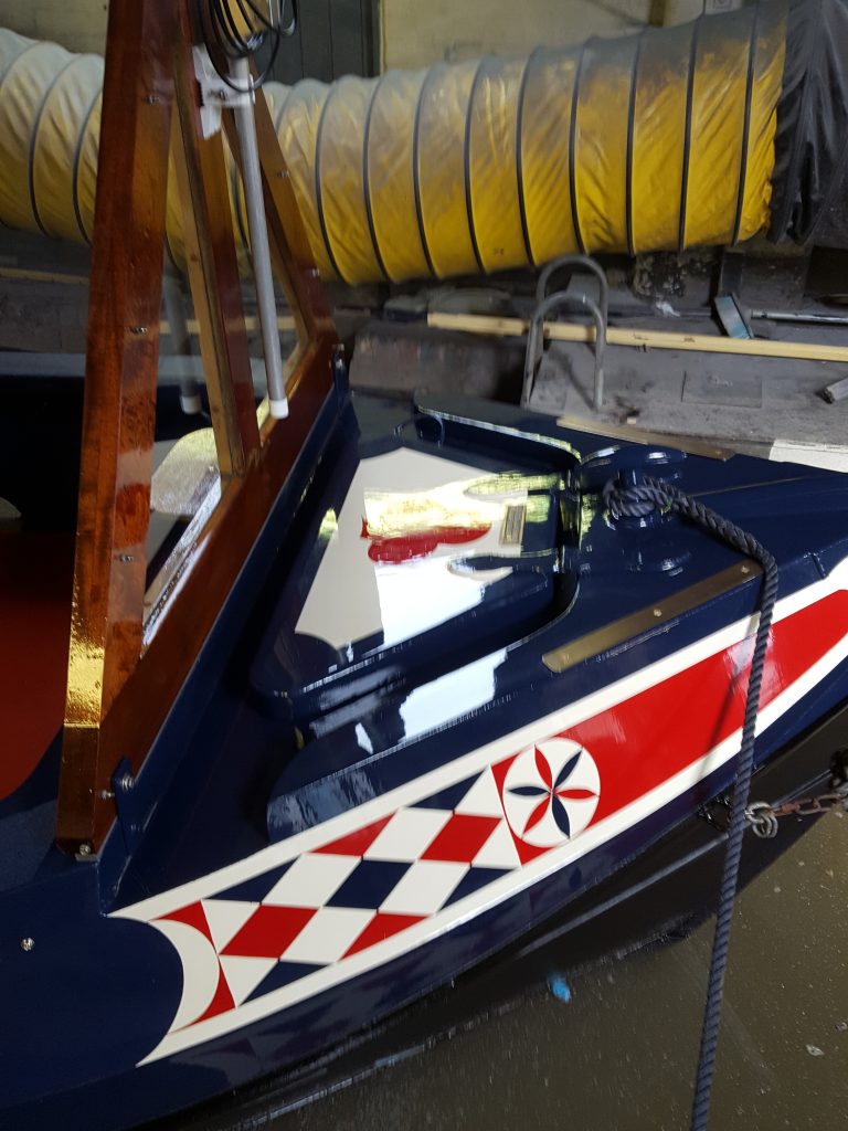 As she was out of the water I reblacked the hull, a long hard job to get it well prepared for the 4 coats of two pack! The final outcome is awesome.