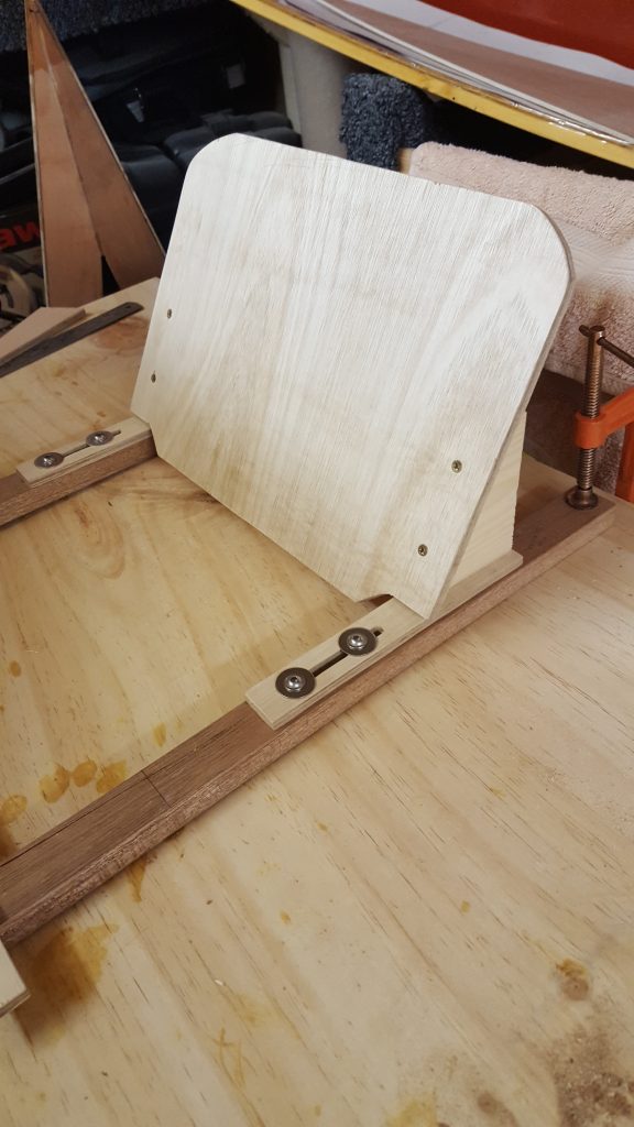 With the centre tub taking shape a foot rest was needed, this has been designed and integrated into the Kayak, again captive TNuts were used in the base timbers
